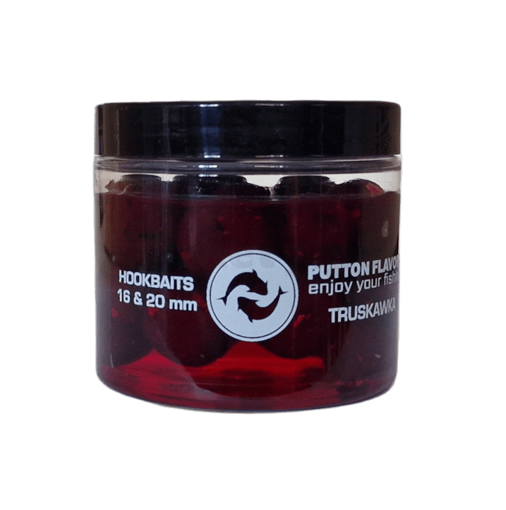 Kulki PUTTON FLAVORS – Truskawka  200 g / 16-20 mm, te kulki są idealne do wykorzystania jako kulki proteinowe haczykowe. Dzięki starannie wykonanemu procesowi produkcji, gdzie kulki są zalane wysokiej jakości dipem, zyskują one intensywny aromat. Ich solidna struktura pozwala na utrzymanie się w wodzie nawet przez 48 godzin. Dodatkowo, zastosowanie dipu pozwala na lepszą widoczność przynęty na dnie, co przyciąga karpi i amury. Kulki zostały stworzone z naturalnych składników, pozbawione są sztucznych konserwantów.