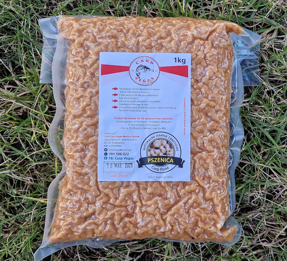 Pszenica Gotowana firmy Caro Vegas to doskonały wybór dla wędkarzy, którzy pragną zwiększyć skuteczność swoich połowów. Produkt Pszenica Gotowana firmy Carp Vegas jest pakowany próżniowo w praktyczne opakowania po 1 kg, gwarantuje to świeżość i wygodę użytkowania.